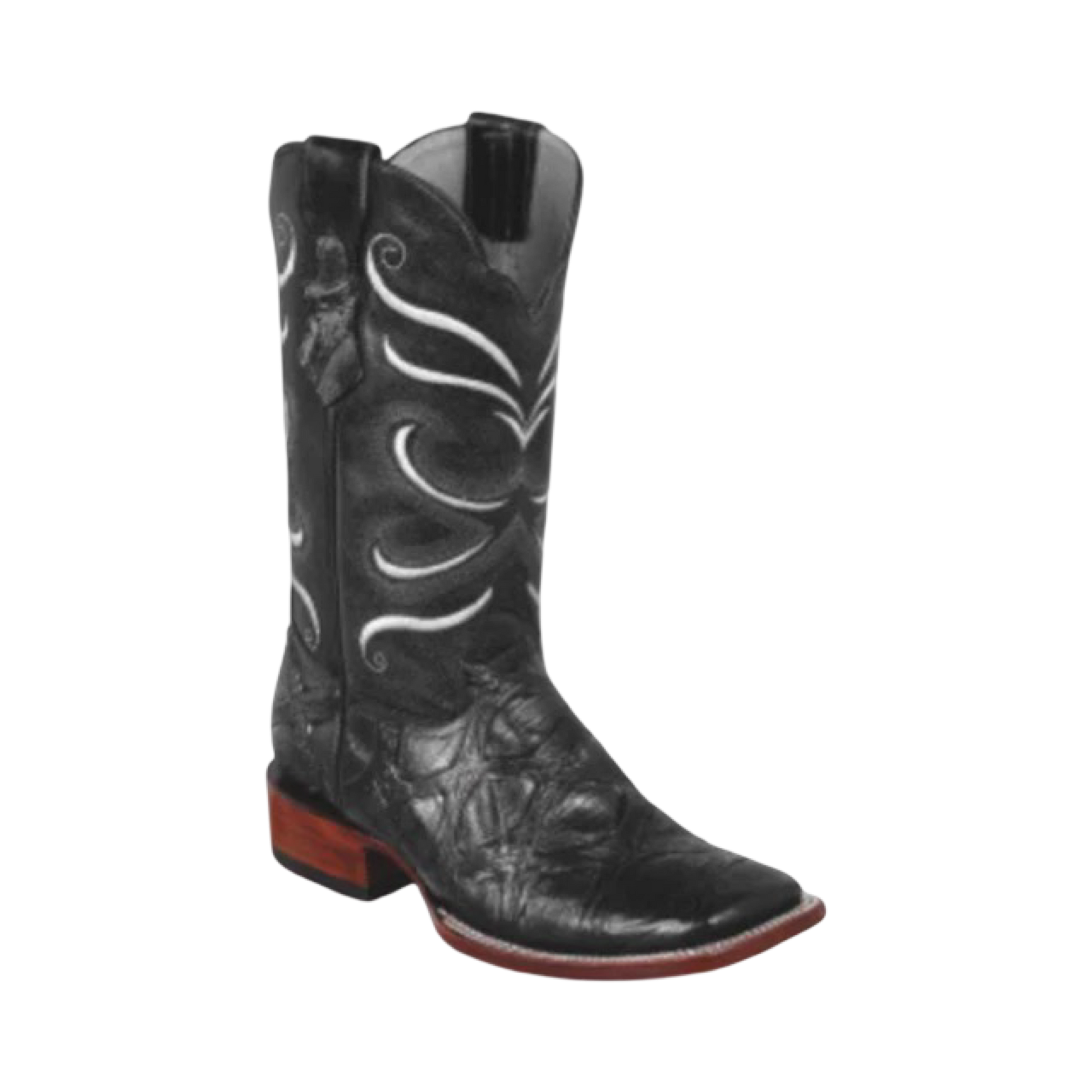 Detalles decorativos: Bordados complejos en el tubo (caña) con patrones florales o geométricos, típicos del estilo western.