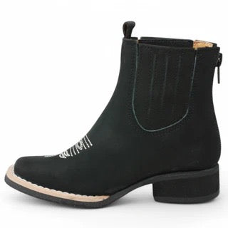 Estos botines charros para niño en color negro de gamuza ofrecen estilo, comodidad y resistencia. Su diseño tradicional los convierte en el calzado ideal para eventos charros, presentaciones escolares y uso diario.