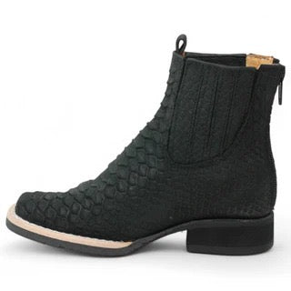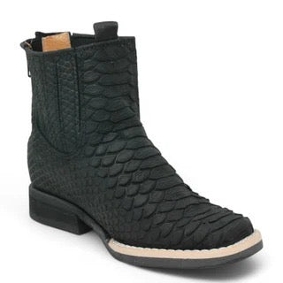 Botines charros para niño con acabado tipo pitón en color negro. Elegantes, llamativos y fabricados con materiales resistentes para un uso prolongado.