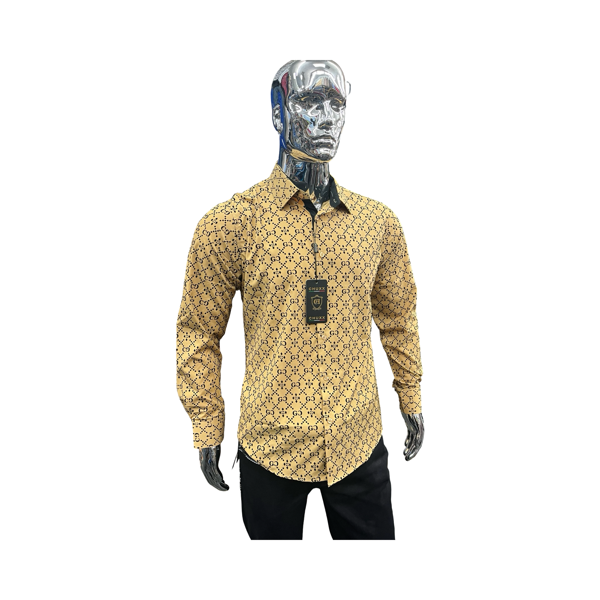 Camisa Oro con diseño negro Casual para Hombre - Liquidación