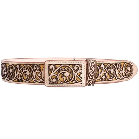 Cinto vaquero crema con grecas finas en corte láser. Un accesorio elegante y llamativo para completar tu look western.