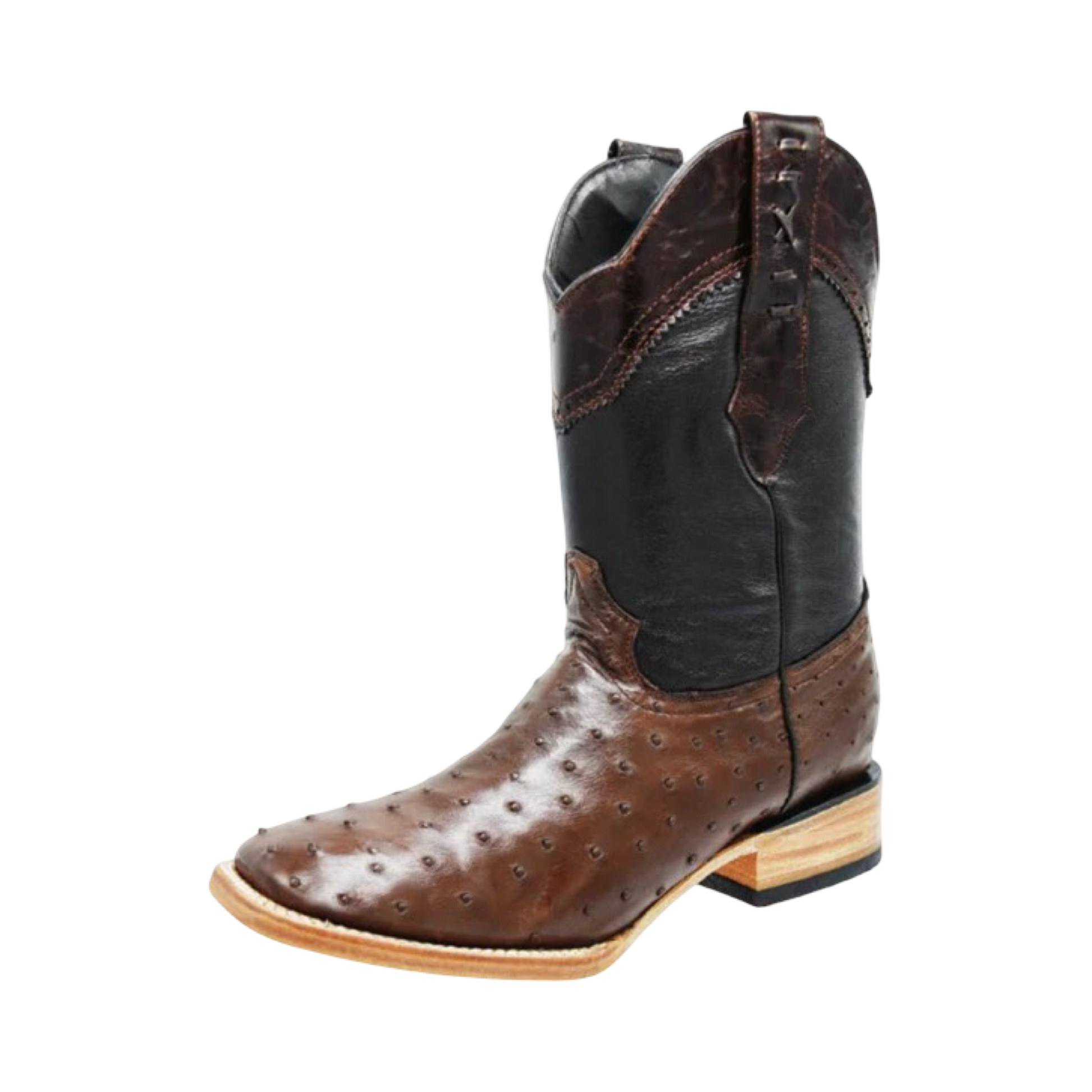 Botas de avestruz genuino en color café, hechas a mano por artesanos expertos. Su horma rodeo brinda comodidad, durabilidad y un estilo vaquero clásico ideal para cualquier ocasión.
