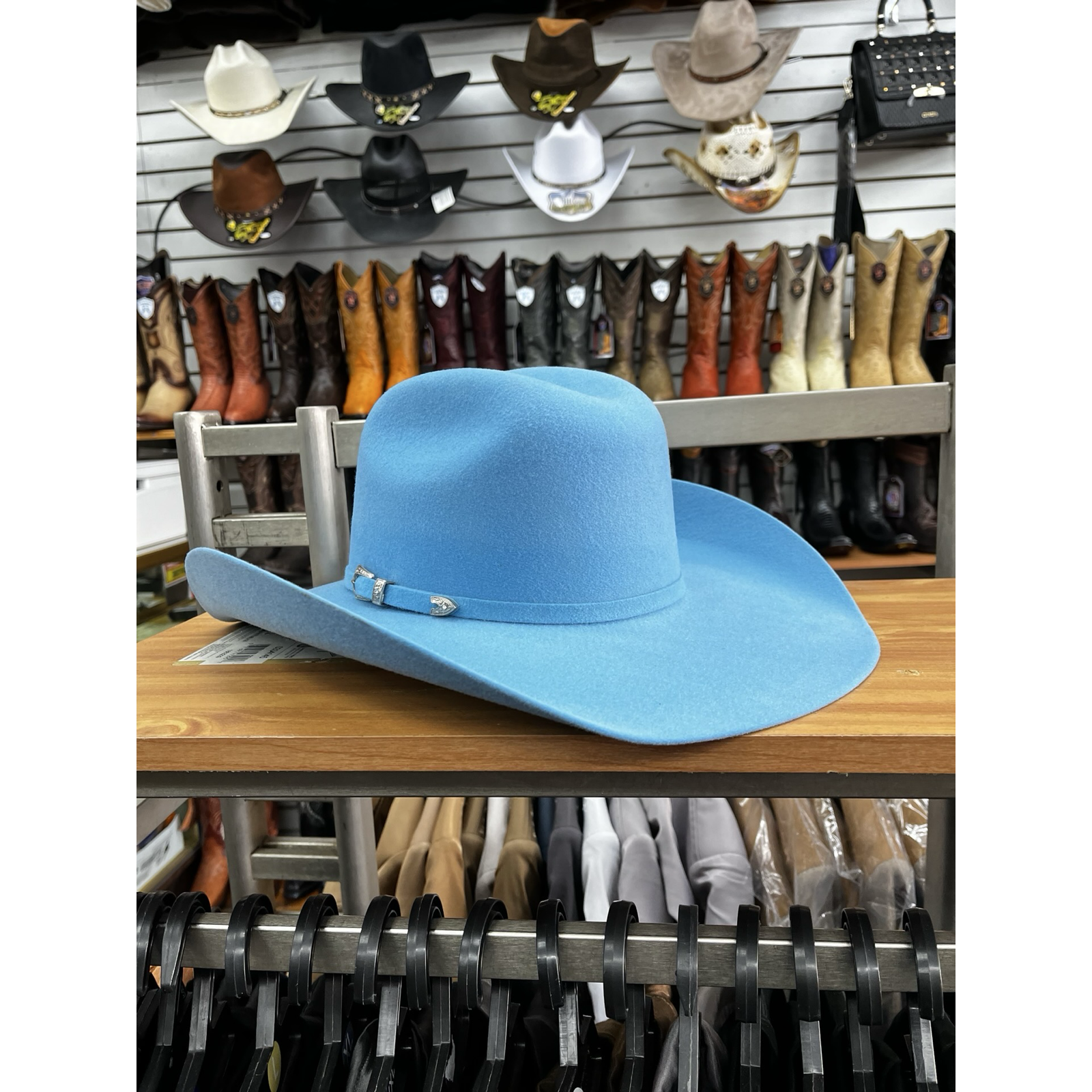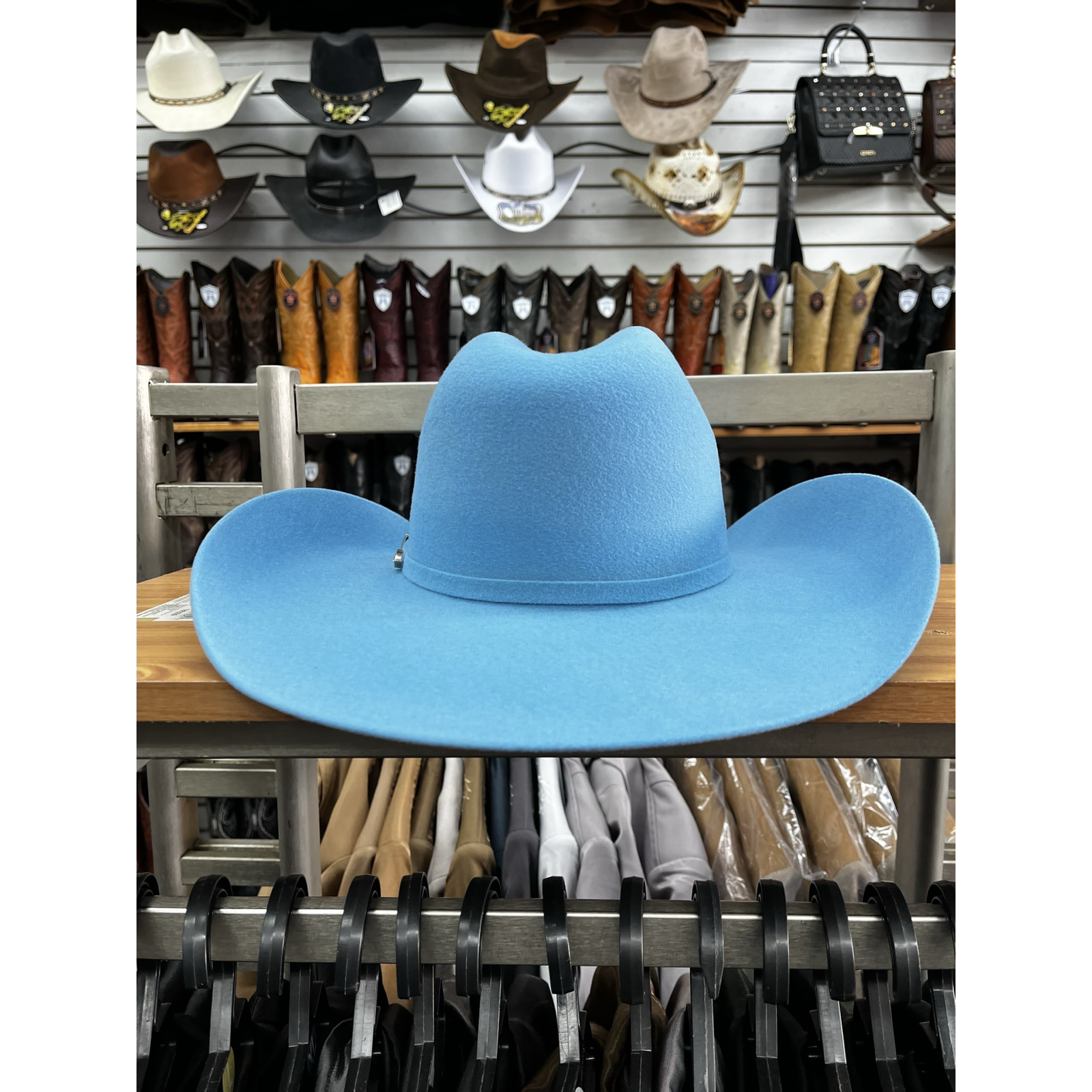 Sombrero vaquero texano para mujer color azul cielo, un diseño fresco y femenino que combina elegancia y comodidad. Inspirado en el estilo western moderno, este sombrero es ideal para rodeos, festivales o un look casual con personalidad.
