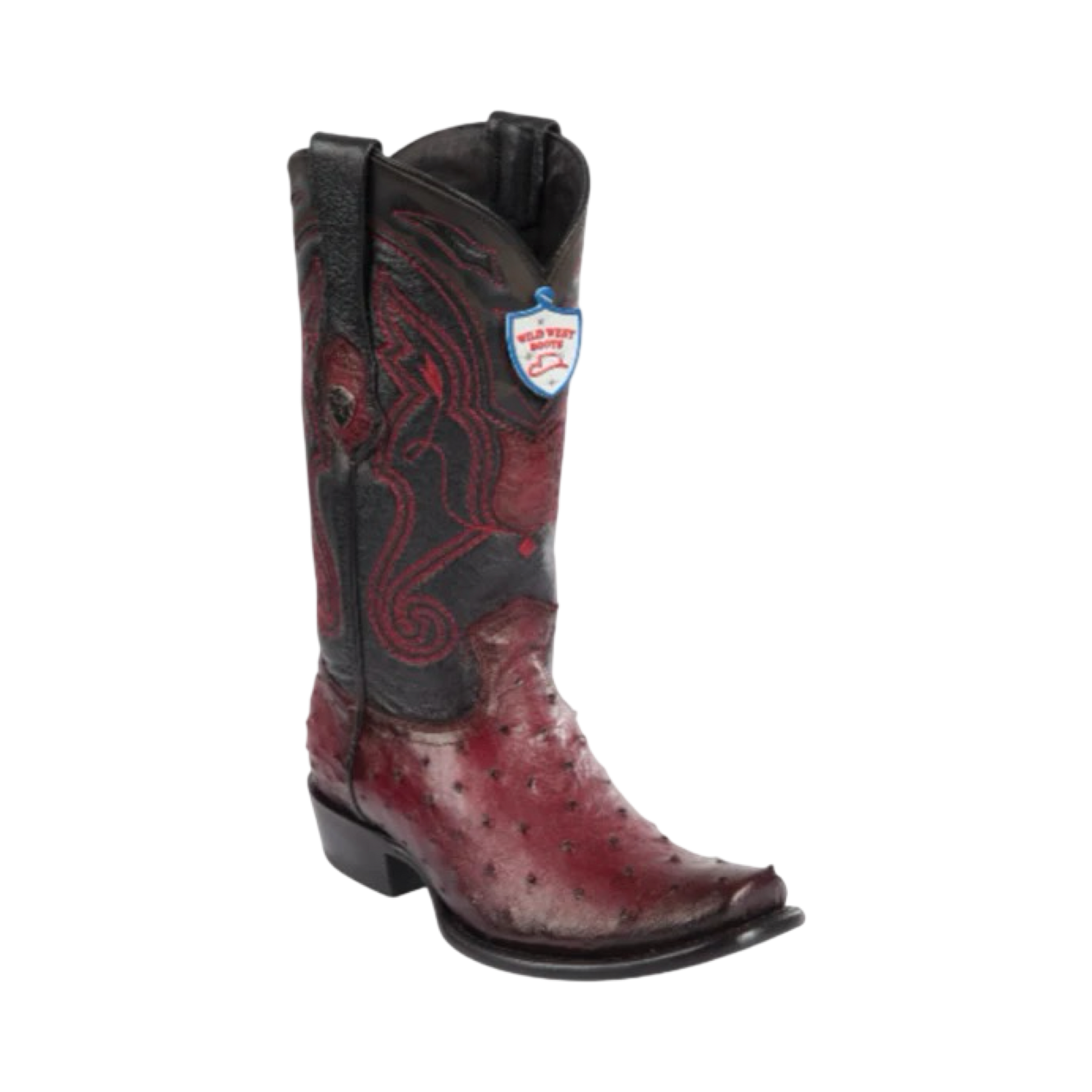Estas botas Wild West Faded Burgundy de piel de avestruz ofrecen un estilo elegante y sofisticado. Su horma Dubai brinda un ajuste cómodo y moderno.