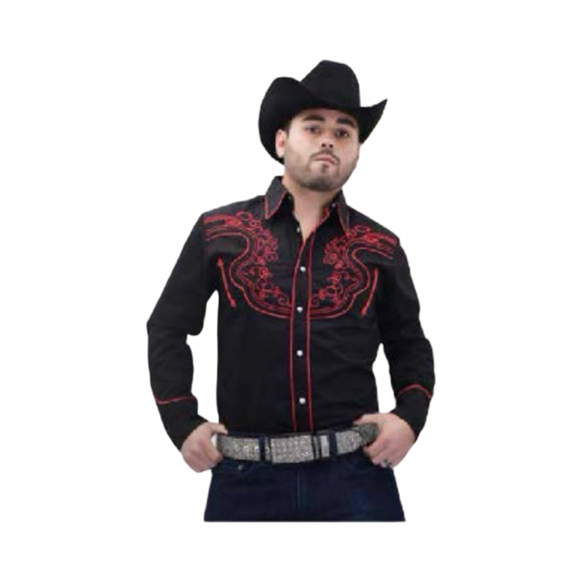 Camisa Vaquera Bordada Negra con Bordado Rojo Tradicional – White Diamonds Boots