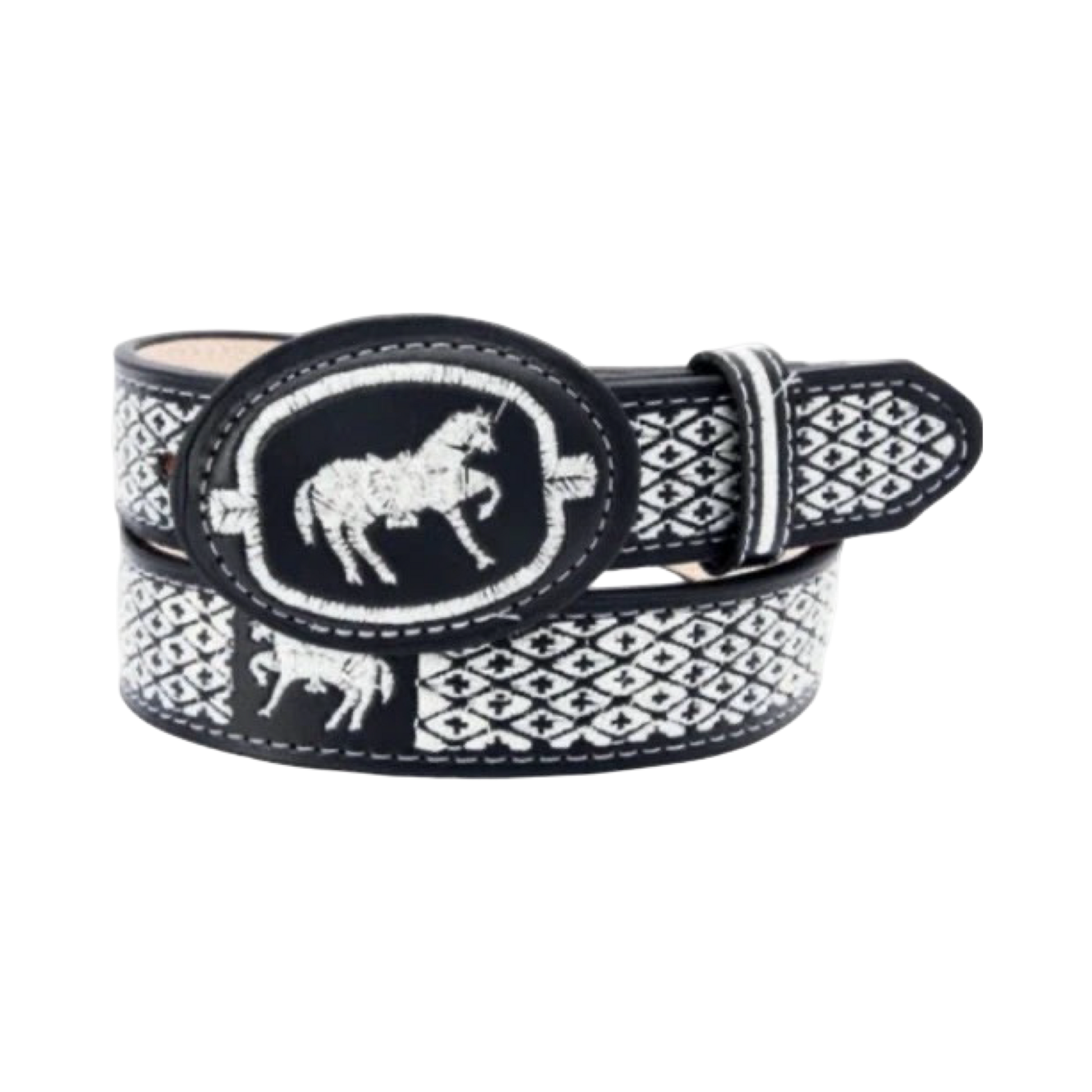 ¡El look vaquero no está completo sin un buen cinturón! Nuestra colección de cinturones vaqueros para niños está diseñada para brindar estilo, ajuste y resistencia a los pequeños jinetes y vaqueritas. Fabricados con materiales duraderos y detalles auténticos, como hebillas grabadas, diseños con bordados y aplicaciones que destacan el espíritu del oeste.