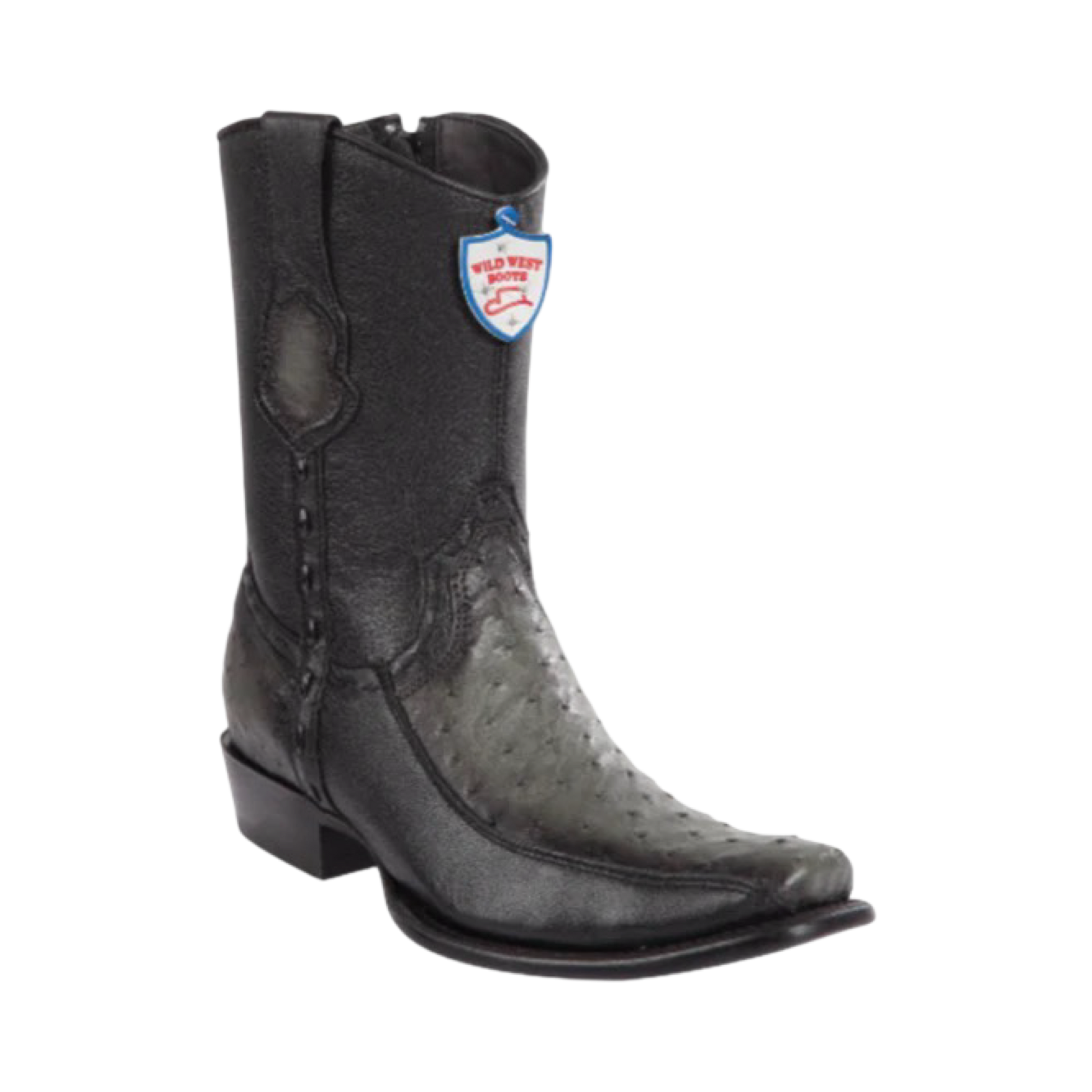 Botas Wild West Avestruz Horma Dubai Color Gris Difuminado – Piel Genuina de Alta Calidad
