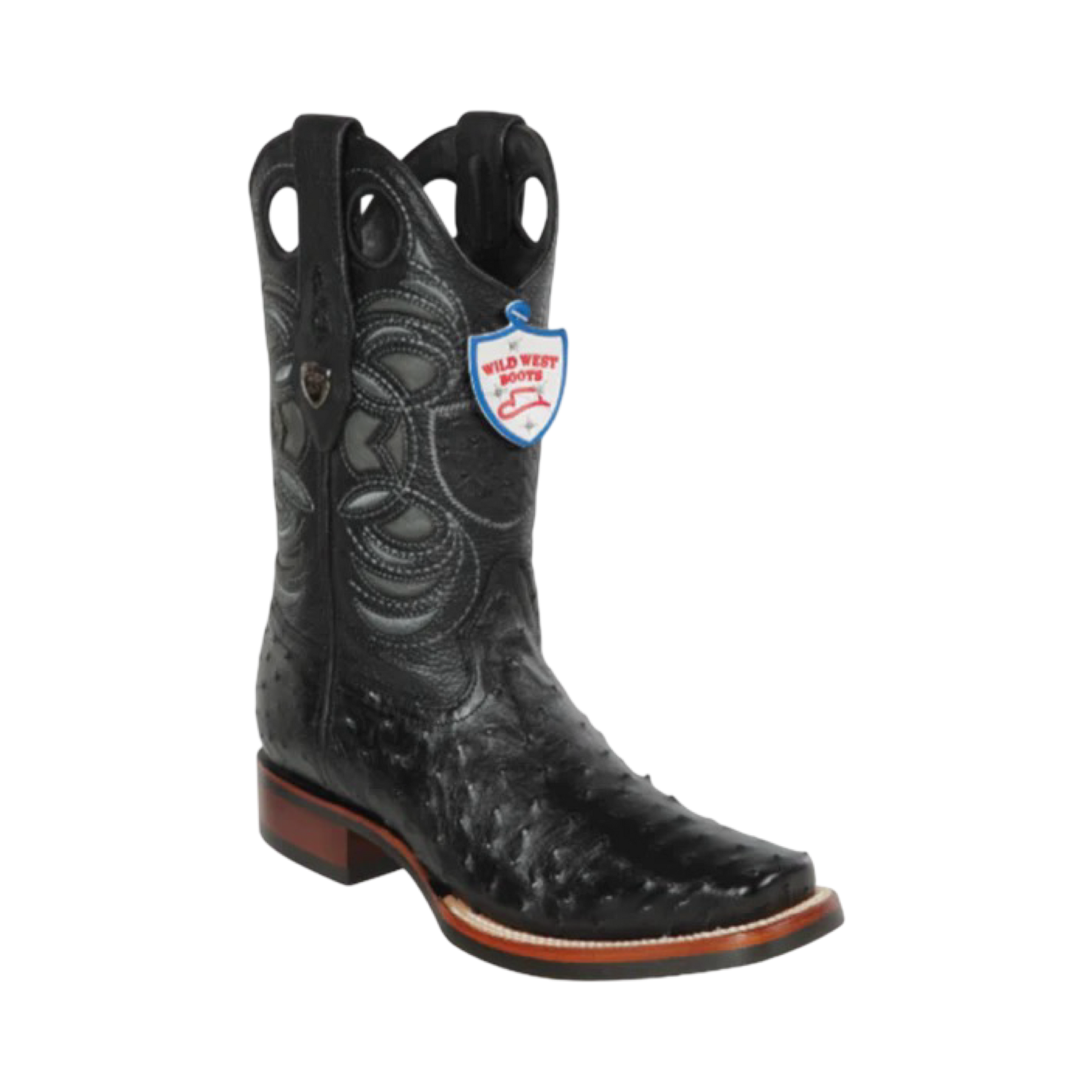 Botas Wild West Avestruz Horma Rodeo Color Negro con Suela de Hule – Piel Genuina